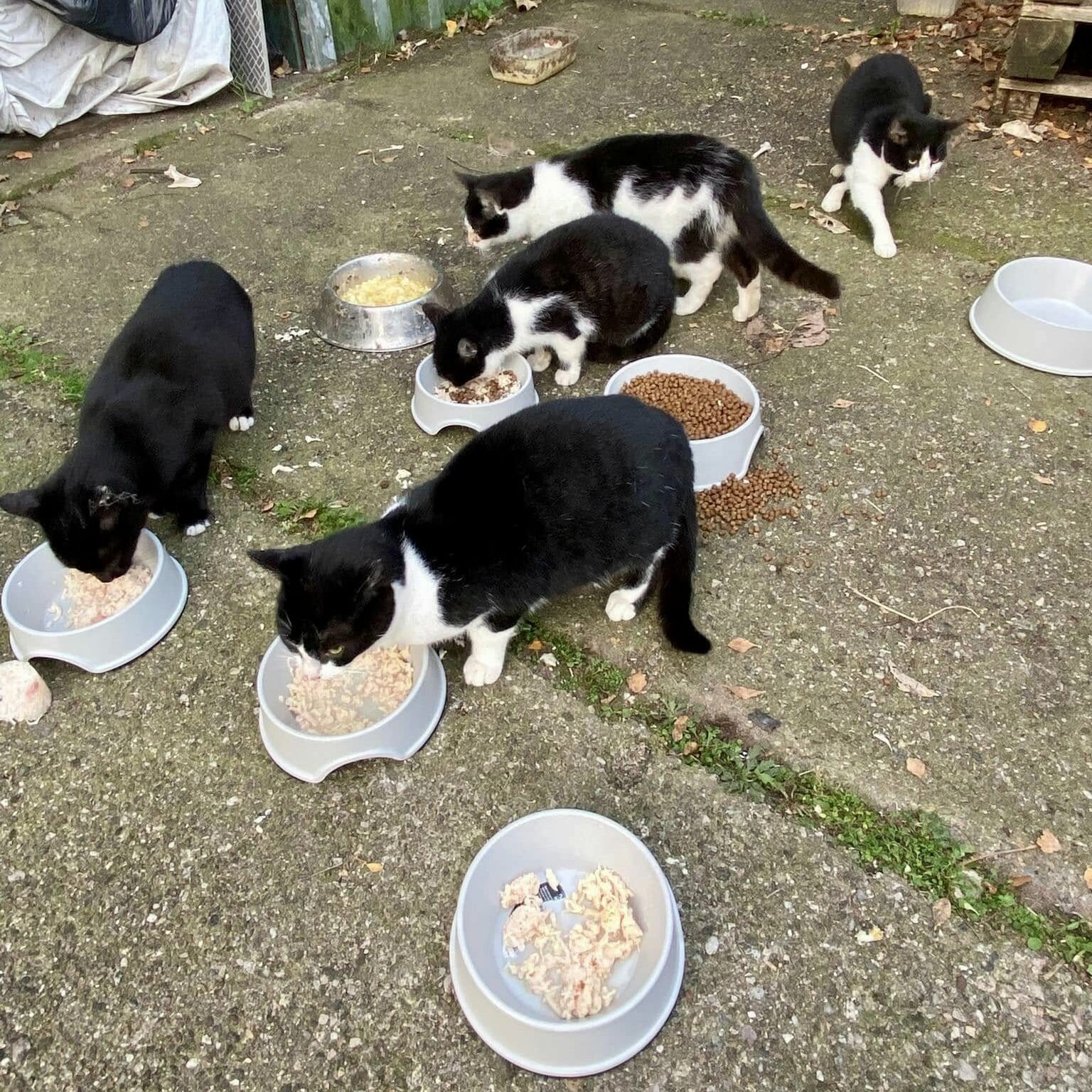 Zásobujeme kočičky jídlem, léky, antiparazitiky a snažíme se vykastrovat všechny, které se podaří odchytit.