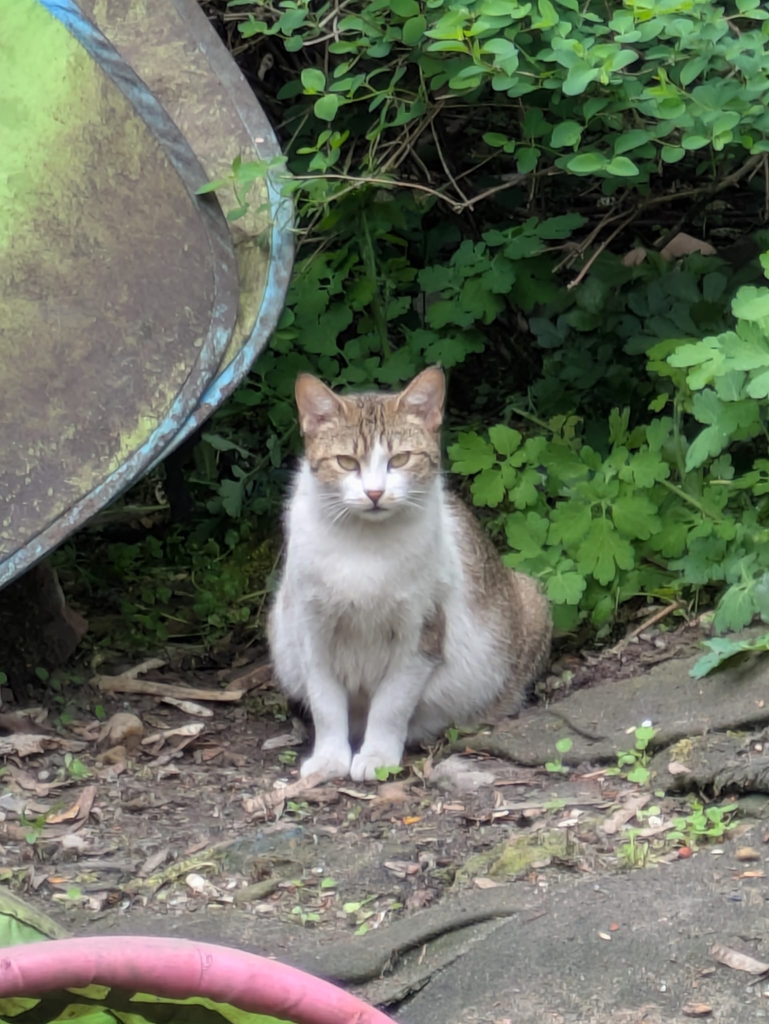 s 5 kočičkami trvalkami a další dočaskuje. Často se dá potkat ji venku, jak odchytává toulavé kočičky.